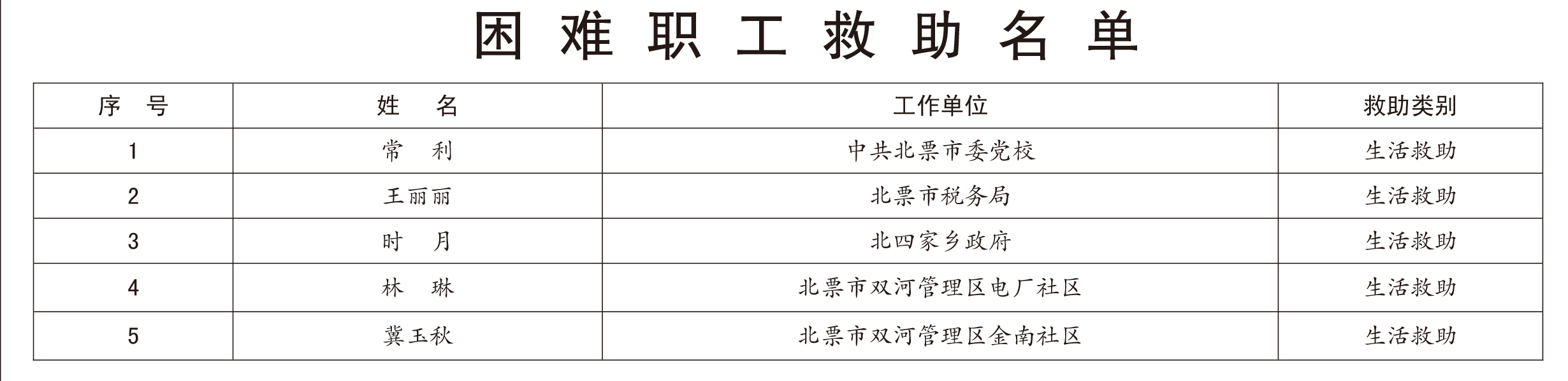 为了贯彻落实困难职工帮扶有关要求,实现精准扶贫,坚持“公开、公平、公正、透明”的原则,市总工会拟对经基层工会申报的并经审核符合困难职工建档救助条件的人员进行公示。欢迎社会各界人士进行监督,如有异议,可拨打监督电话:0421-5873399,或直接到市总工会生活保障部实名反映。