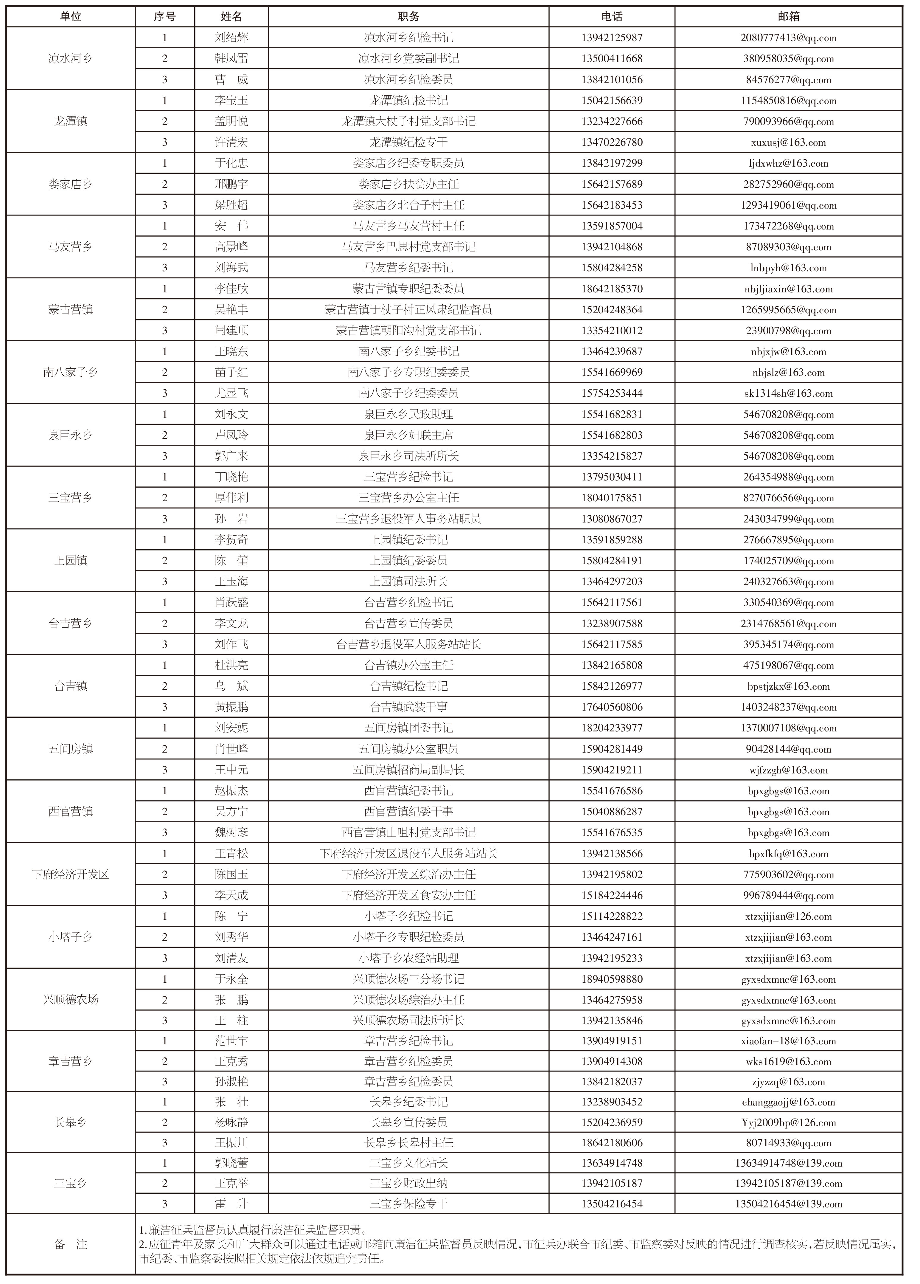 为深入贯彻落实党风廉政建设规定,强化廉洁征兵监督监管,不忘初心,牢记使命,廉洁征兵,征优质兵。根据国防部征兵办公室《关于建立廉洁征兵“零报告”制度和廉洁征兵监督员制度的通知》要求,现将北票市36个各乡镇、管理区和北票市本级廉洁征兵监督员在《北票市报》上进行公示,接受全市人民群众的监督。北票市廉洁征兵监督举报电话0421-5859002(24小时有人接听)北票市人武部纪委监督举报电话15566442323(24小时开机)。