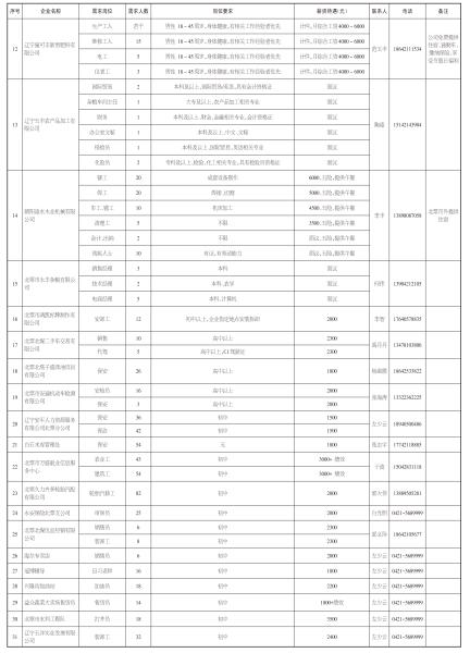 北票市“春风行动”暨域内企业用工需求信息表(二)